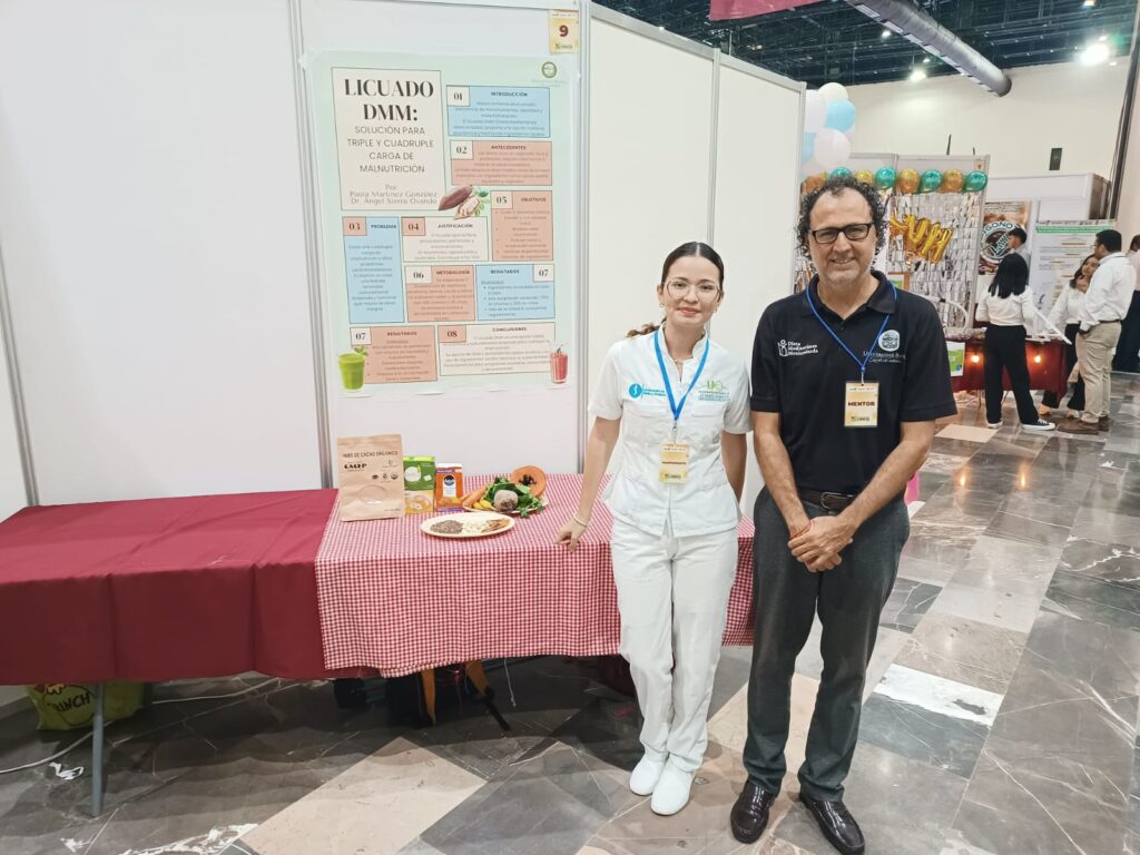 Asimismo, la estudiante Paola Martínez González, en colaboración con el doctor Ángel Sierra Ovando, presentó el proyecto «Licuado DMM: Solución para triple y cuádruple carga de malnutrición», el cual participa actualmente en el concurso de la Feria Estatal de Ciencia 2025, ampliando la presencia de la UO en las líneas de investigación vinculadas a la salud y la nutrición.