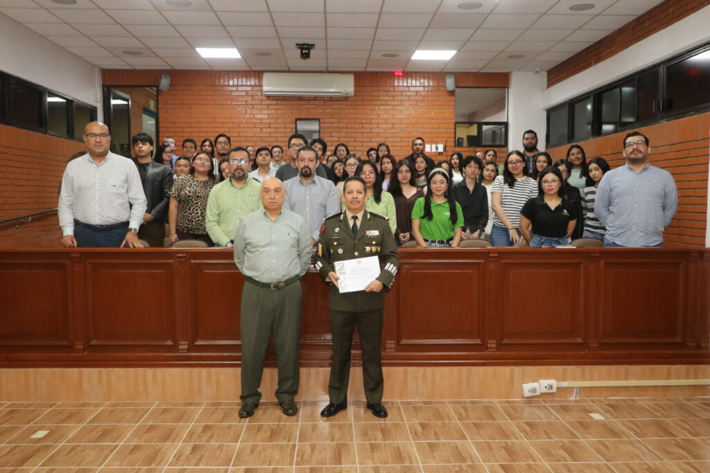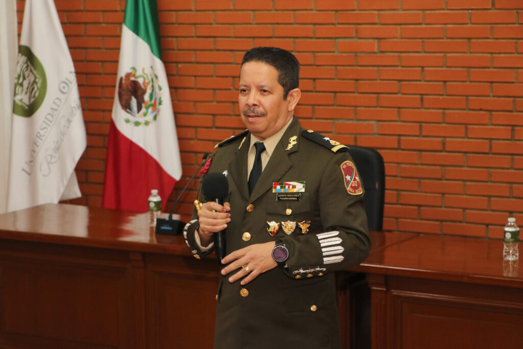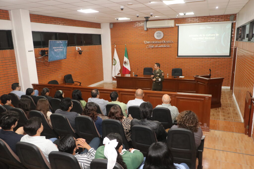 En el marco de la vinculación institucional y como parte de las acciones orientadas al fortalecimiento de la formación integral de la comunidad universitaria, la Universidad Olmeca llevó a cabo la conferencia «Difusión de la Cultura de Seguridad Nacional», impartida por el General Brigadier del Estado Mayor Pedro Rodríguez Moreno, de la 30ª Zona Militar.